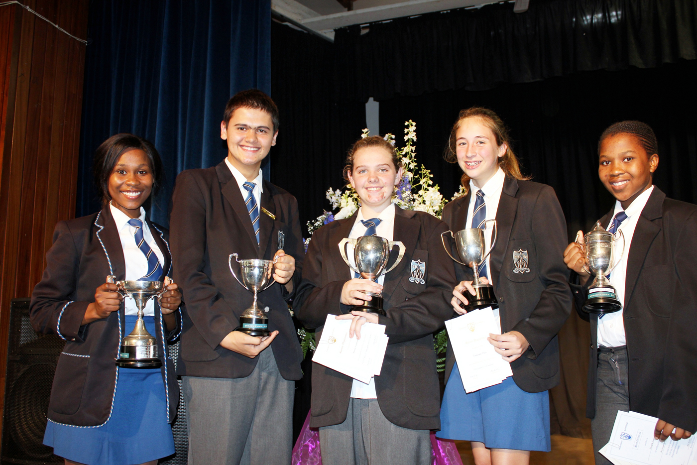 Photo A: LSEN GRAADWENNERS: Sinelethu Sonqishe [YL 5], Anthony Grobler [YL 4], Anika Saaiman [YL 3], Tamaryn Price [YL 2], Sinesipho Sompa [YL 1]